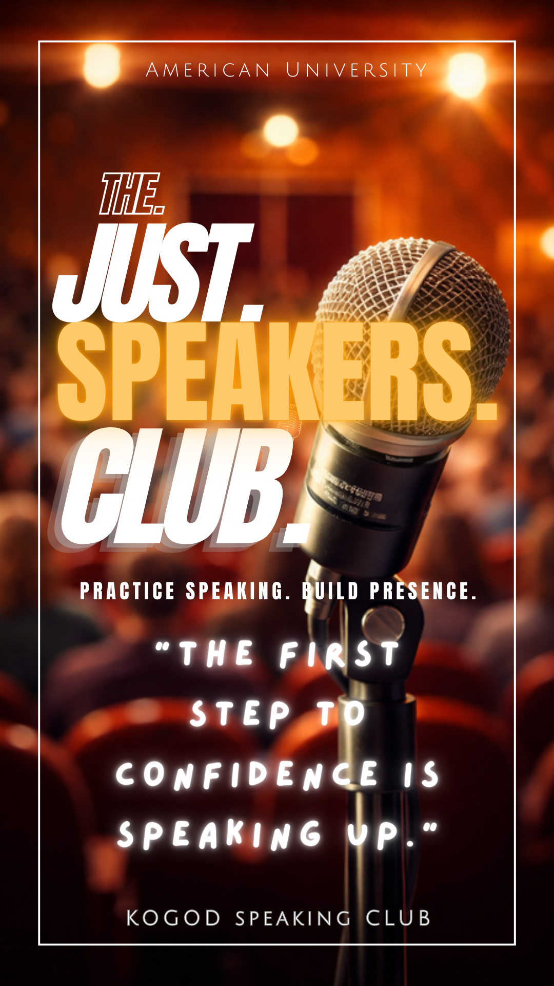 The AU Just Speakers Club is a student-led public speaking club that is currently forming and we are gauging interest and building a roster to determine whether there is enough demand to formally launch the club! This Club is designed to help individuals build confidence, develop leadership presence, and strengthen real-world communication skills in a safe and supportive environment.